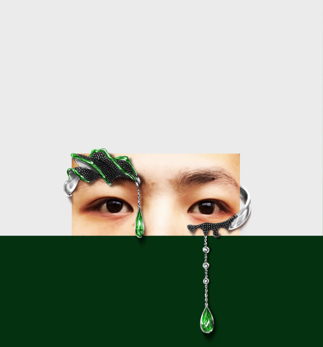 Emerald, Green Diamonds, Enamel, Black Jet, White gold